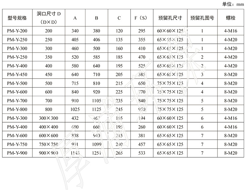產(chǎn)品規(guī)格及外形尺寸預(yù)留孔尺寸表